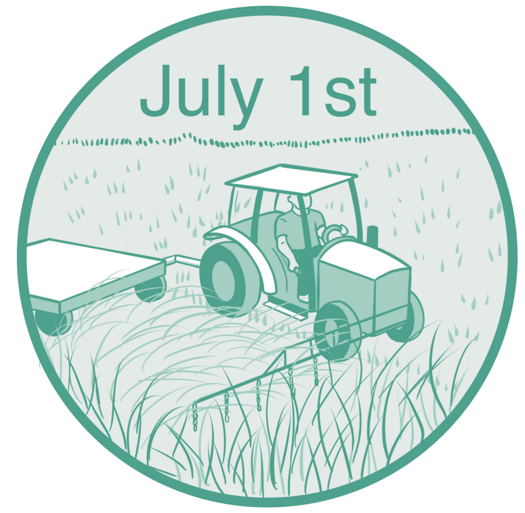 This practice allows for grassland birds, pollinators, and other grassland wildlife to still have habitat available when mowing needs to occur. In the case of smaller landscapes, coordinate the staggering of mow dates with neighbors (see BMP above) to achieve the same impact.